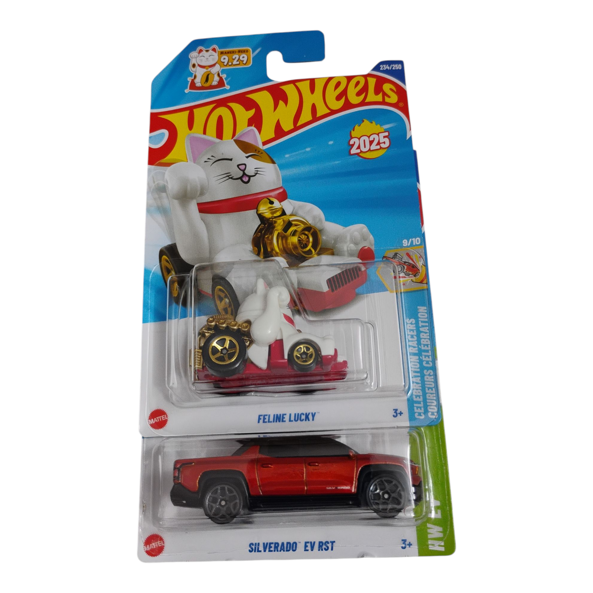 Get a lucky advantage with the Silverado EV RST & Feeline Lucky Bundle! This bundle includes the hot wheels P case, ensuring your vehicle stands out from the competition. Upgrade your collection with this quirky and fun bundle today! (Limited quantities available!)